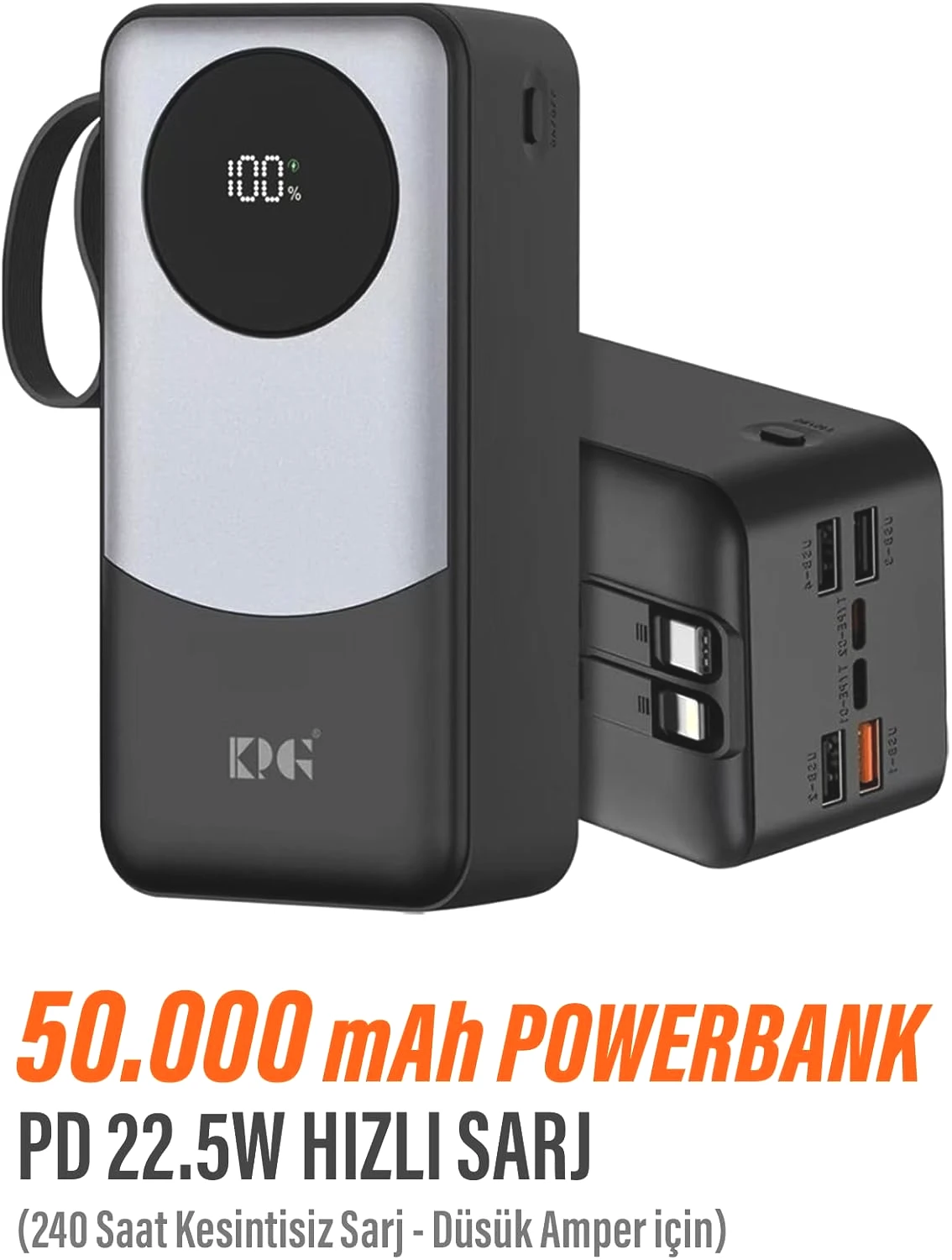 Eğer küçük, hafif bir powerbank aramıyorsanız ve önceliğiniz yüksek kapasite, hızlı şarj ve pratik kullanım ise 50.000 mAh kendinden kablolu bu powerbank beklentiyi karşılıyor. Dijital göstergesi, çoklu port desteği ve 22.5W hızlı şarj özelliğiyle günlük hayatta gerçekten iş görüyor.